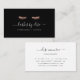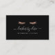 Elegant business card design for your eyelash extensions or tinting services features your name or business name in modern, hand lettered script typography, accented with a lush pair of eyelashes in faux rose gold foil on a black background. Add an additional line of text beneath in matching black lettering for your occupation or title. Personalize the reverse side with your contact details. A chic and professional choice for estheticians specializing in lash services.