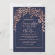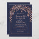 Rose gold leaf navy blue typography wedding invitation
