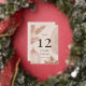 This delicate and elegant wedding table number features a pink beige background with leaves in rose gold foil. Personalize it for your needs. You can find matching products at my store.