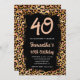 Rose Gold Leopard Painted Black 40th Birthday Invitation