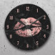 Rose Gold Lipstick Kissing Modern Black Marble Round Clock