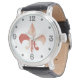 Rose gold look fleur-de-lis in white background . The watchface comes with Arabic numerals and dots .Great for anyone who likes this mediaval French symbol .