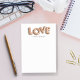 Chic personalized notes feature LOVE at the top spelled out in rose gold balloons, with your name or choice of personalization beneath.