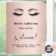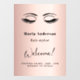 Rose gold, blush background. Personalize and add your name, title, opening hours. Black text. Decorated with a pair of eyes/lashes.