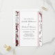 This elegant wedding invitation features a white marble background with rose gold glitter accents and a classic wedding typography.