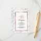 Provide your guests with all of your wedding reception details with this elegant enclosure card featuring modern script, charcoal gray text including an artistic palm tree and metallic rose gold copper frame on the front of the card. A white and gray marble background is on the front and back.