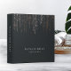 Keep track of your product inventory, appointments, customer data and more with this chic soft black binder. Design features two lines of custom text in classic white lettering on a soft black background with strands of faux rose gold foil string lights cascading from the top. Add additional custom text to the solid black spine. Perfect for salons, beauty retailers, makeup artists, spas or any business. Mini size also available in our shop.