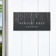 Chic personalized door sign for your business features two lines of text in classic white lettering on a soft black background with strands of faux rose gold foil string lights cascading from the top.