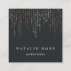 Elegant and simple design in a unique square format features classic white lettering on a rich soft black background with vertical strands of faux rose gold foil string lights cascading from the top. Personalize the front with your name and business name or occupation, and add your full contact information to the reverse side. A beautiful choice for any occupation; example shown for aestheticians.