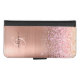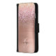 Rose Gold Metal, Glitter, Script Name & Monogram iPhone Wallet Case