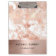 Rose Gold Metallic White Marble Consultant Business Clipboard. Personalize this elegant rose gold metallic white marble professional business clipboard with your name and profession on the front and contact details on the back side. This luxurious gold marble design fits particularly well for any profession in finance, law, insurance and real estate.