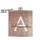Blush Pink - Rose Gold Metallic Foil Fabric Elegant Monogram Flask. This Flask can be customized to include your initial and first name. The Rose Gold Flask is perfect for a birthday, wedding or bachelorette party celebration.