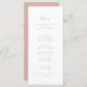 This rose gold minimalist dinner menu card is perfect for a modern wedding. The simple and elegant design features classic and fancy script typography in rose gold.