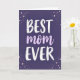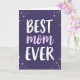 This card features the phrase “BEST mom EVER” centered on a deep indigo-to-purple night-sky background, creating a cozy, admiring focus ❤️. The words “BEST” and “EVER” sit above and below in textured white lettering with a confident, brushed look, while “mom” rests between them in soft lavender cursive that feels gentle and affectionate. The layout gives the middle word extra tenderness, like a quiet hug held right at the center of the design. Around the text, tiny stars and dotted sparkles drift mostly along the edges, as if circling in support like close friends. The star accents mix rose-gold tones, soft pink, and white, adding a romantic glow without crowding the message 🌼. Some of the rose-gold stars appear slightly glittery, catching the eye like little flashes of celebration. In the corners and along the outer border, the scattered stars and dots form a loose frame against the dark, celestial backdrop.