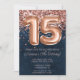 Rose Gold Navy Blue 15th Birthday Party Invitation