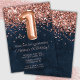Rose Gold Navy Blue 1st Birthday Party Invitation