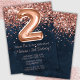 Rose Gold Navy Blue 2nd Birthday Party Invitation