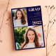 Modern simple minimalist 3 photos graduation party. Add your photos, with a simple bold script real rose gold foil, navy blue, vertical layout.