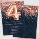 Rose Gold Navy Blue 4th Birthday Party Invitation