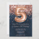 Rose Gold Navy Blue 5th Birthday Party Invitation