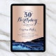 Rose Gold Navy Blue Agate Marble 50th Birthday Invitation