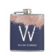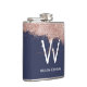 Rose Gold Navy Blue Girly Glitter Dust Monogram Flask
