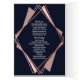 Elegant, chic, and modern with a retro vibe, faux printed rose gold geometric diamond shape outline on navy blue, mauve, and blush pink diamond cutout, wedding program fans. This classic and sophisticated design is perfect for the trendy and stylish marrying couple. Personalize with your own message on the front as well as a customized monogram initial on the back. All photo print design.