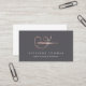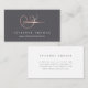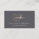 Elegant business cards for seamstresses, fashion designers, tailors, alterations businesses, or costume designers feature a sewing needle and thread in faux rose gold foil, on a refined medium grey background with two lines of custom text beneath in white. Customize the back with your full contact details in gray on white.