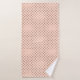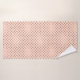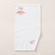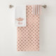 Chic bath towel set done in rose gold and white featuring stripes, on the bath towel and polka dots, on the wash cloth. The hand towel is done in white with a rose gold crown, at the bottom with custom coral colored text reading Hers. Personalize the text to read what you want. Great gift idea for weddings and new home owners.