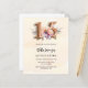 A modern, stylish and glamorous invitation for a Quinceañera. A peach watercolored colored background, decorated with a peach and purple watercolored flower. The name is written with a modern hand lettered style script. Personalize and add your party details. Number 15 is written with a balloon style font, script.