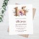 A modern, stylish and glamorous invitation for a Quinceañera. White background, decorated with a peach and purple watercolored flower. The name is written with a modern dark rose gold colored hand lettered style script. Personalize and add your party details. Number 15 is written with a balloon style font, script.