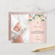 A modern and elegant baptism thank you card. A girly rose gold faux metallic looking background decorated with watercolored white, blush pink, rose gold florals and faux diamonds. Personalize and add your photo of the child, thank you note and name.