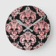 Rose Gold Pink & Black Damask Modern Personalized Round Clock