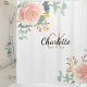 Rose gold pink floral greenery monogram name shower curtain