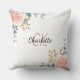 Rose gold pink floral greenery monogram name throw pillow