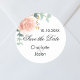 A Save the Date sticker for your wedding. A stylish white background. Decorated with green watercolored rose gold and blush pink floral, rose, eucalyptus leaves, sprigs, greenery, faux gold leaves. Personalize and add the wedding date and your names.
