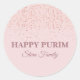 Rose Gold Pink Glitter Dust Hebrew Happy Purim Classic Round Sticker
