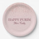 Rose Gold Pink Glitter Dust Hebrew Purim Sameach Paper Plates