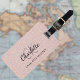 Rose gold, blush pink colored faux leather print as background. Personalize and add your first name, monogram letters and full name on the front. Your contact information on the back. Black and gray text.