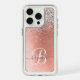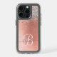 Easily personalize this trendy chic phone case design featuring pretty silver sparkling glitter on a rose gold brushed metallic background.