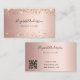 An elegant and glamorous business card on a rose gold background decorated with rose gold sparkles. Elegant hand lettered style script. Personalize and add Your name, title, contact info and your own QR code to your website address.