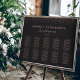 This elegant horizontal rose gold confetti seating chart is perfect for a glamorous quinceañera celebration. You can change the background color. Just click the customize further link, shown under the text personalization area on the right, and choose your custom color background. This poster shows the organization of the guests sitting by the tables and includes enough room for up to about 100 guests. Make room for more (or less) guests by clicking the "customize" button and decrease or increase the size of the font.