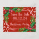 Rose Gold Red Christmas Save Date Holly Glitter Announcement Postcard