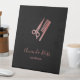 Add your details on this rose gold scissors and comb on black background design for your hairdresser business.