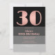 Rose Gold Script Black Grey Stripes 30th Birthday Invitation