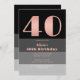 Rose Gold Script Black Grey Stripes 40th Birthday Invitation