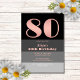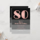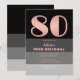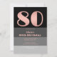 Rose Gold Script Black Grey Stripes 80th Birthday Invitation