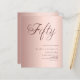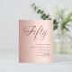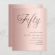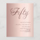 A modern, stylish invitation for a 50th birthday party. Rose gold gradient background and the word Fifty written with elegant large script letters in dark rose gold. Personalize and add a name and party details.
