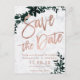 Rose gold script green leaf greenery white marble save the date Wedding Invitation Collection. Send your save the date card with this elegant faux rose gold typography with watercolor green leaf foliage on grey background, perfect for chic style wedding