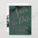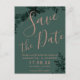 Rose gold script green leaf greenery save the date Wedding Invitation Collection. Send your save the date card with this elegant faux rose gold typography with watercolor green leaf foliage on gray background, perfect for chic style wedding